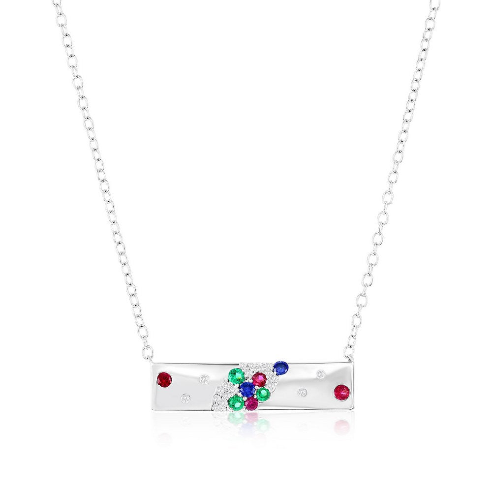 Sterling Silver, Lab-Grown Gem & Natural Diamond Bar Necklace - (28 Stones)