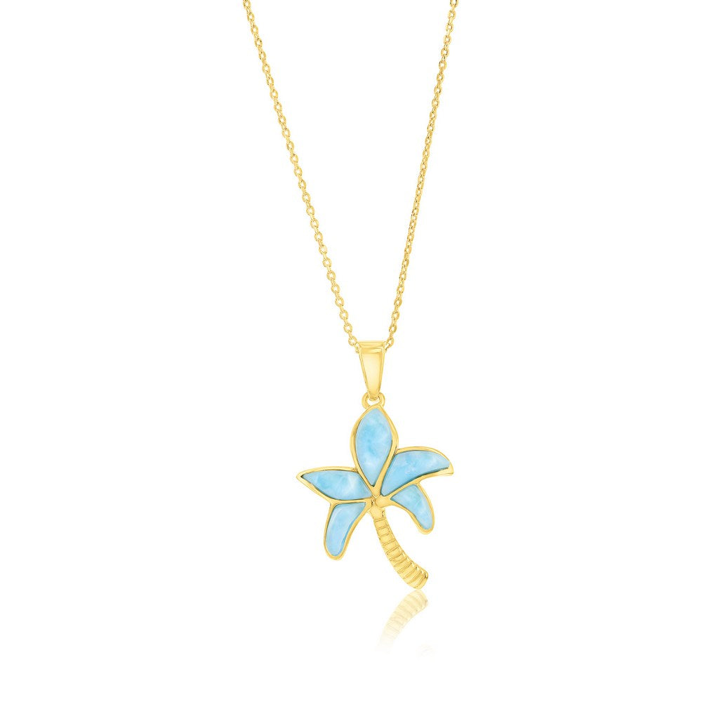 Sterling Silver, Larimar Palm Tree Pendant - Gold Plated