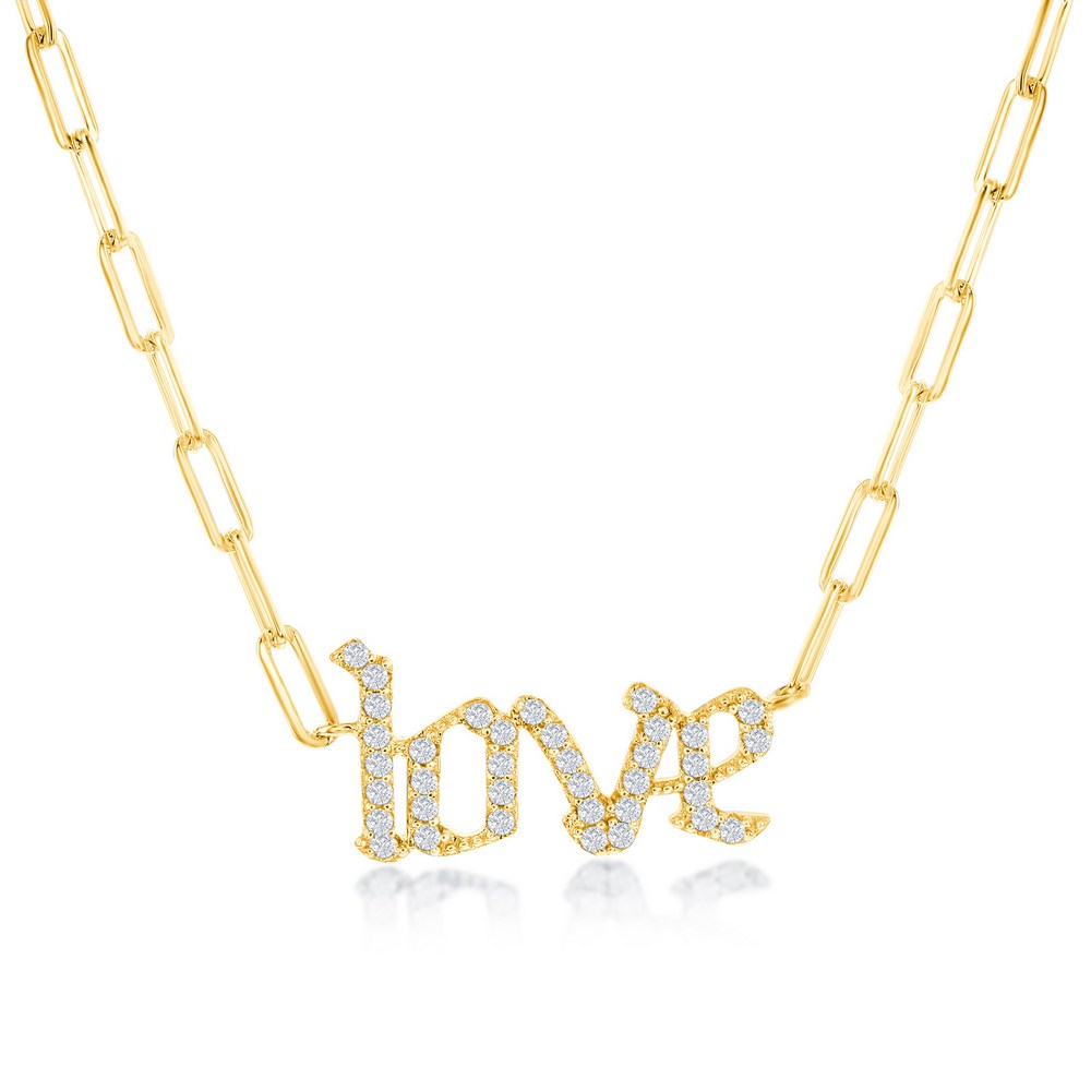 Sterling Silver 'Love' Paperclip Chain Necklace - Gold Plated