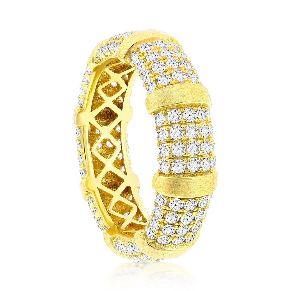 Sterling Silver Micro Pave CZ & Matte Eternity Ring - Gold Plated