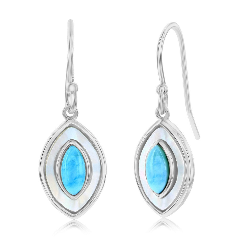 Sterling Silver, MOP & Larimar Marquise Dangle Earrings