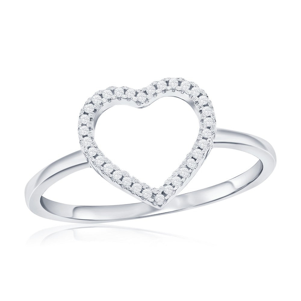 Sterling Silver Open Heart Diamond Ring - (32 Stones)