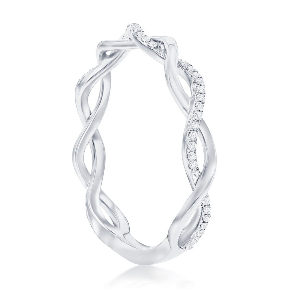 Sterling Silver Open Intertwined Diamond Ring - (53 Stones)