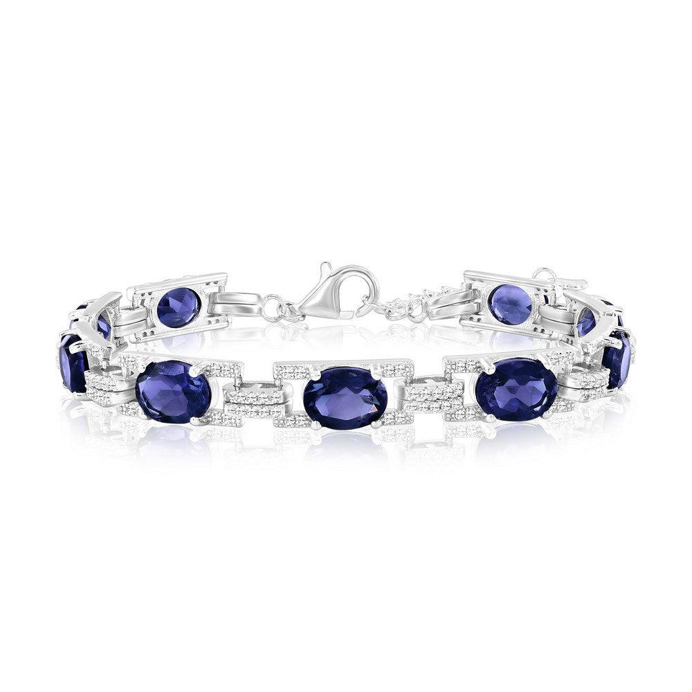 Sterling Silver, Oval & White Topaz Link Bracelet - Sapphire (17.21cttw)