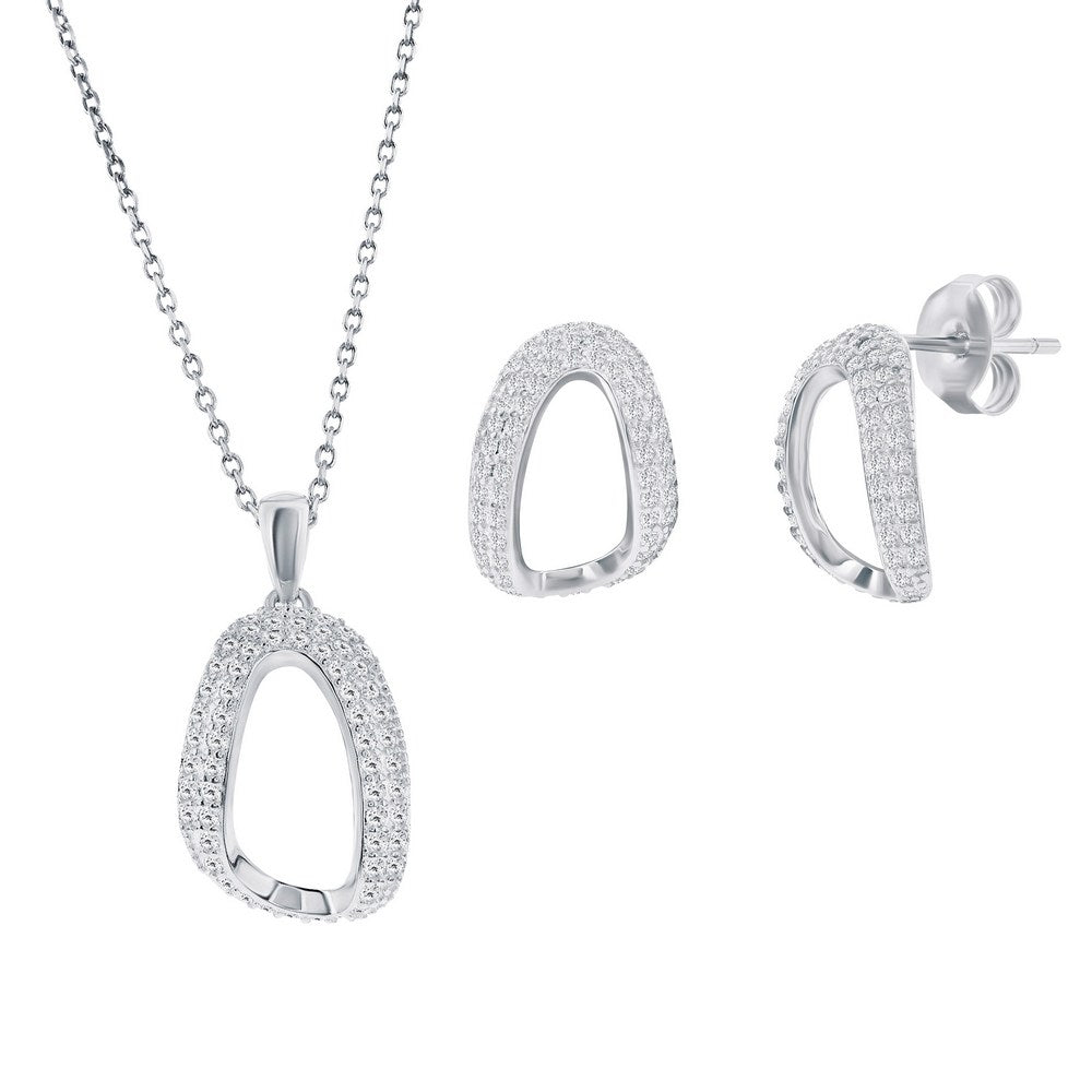Sterling Silver, Pave CZ Oval-Shaped Necklace & Earrings Set