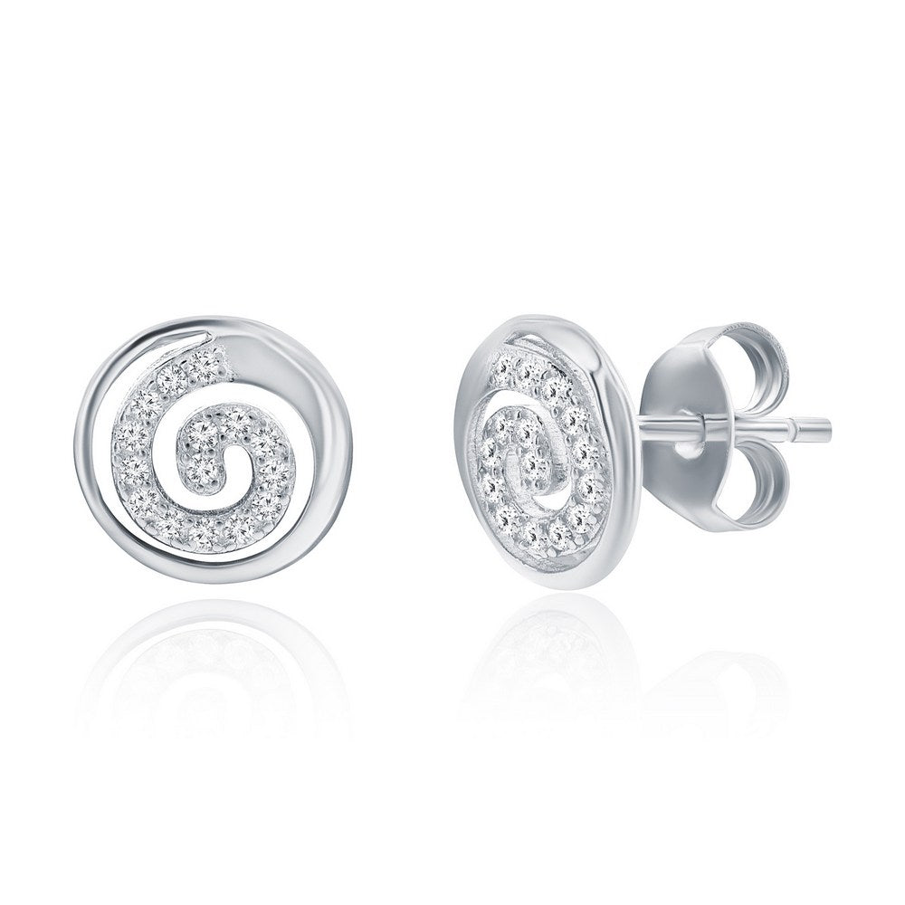 Sterling Silver, Pave CZ Swirl Design Necklace & Earrings Set