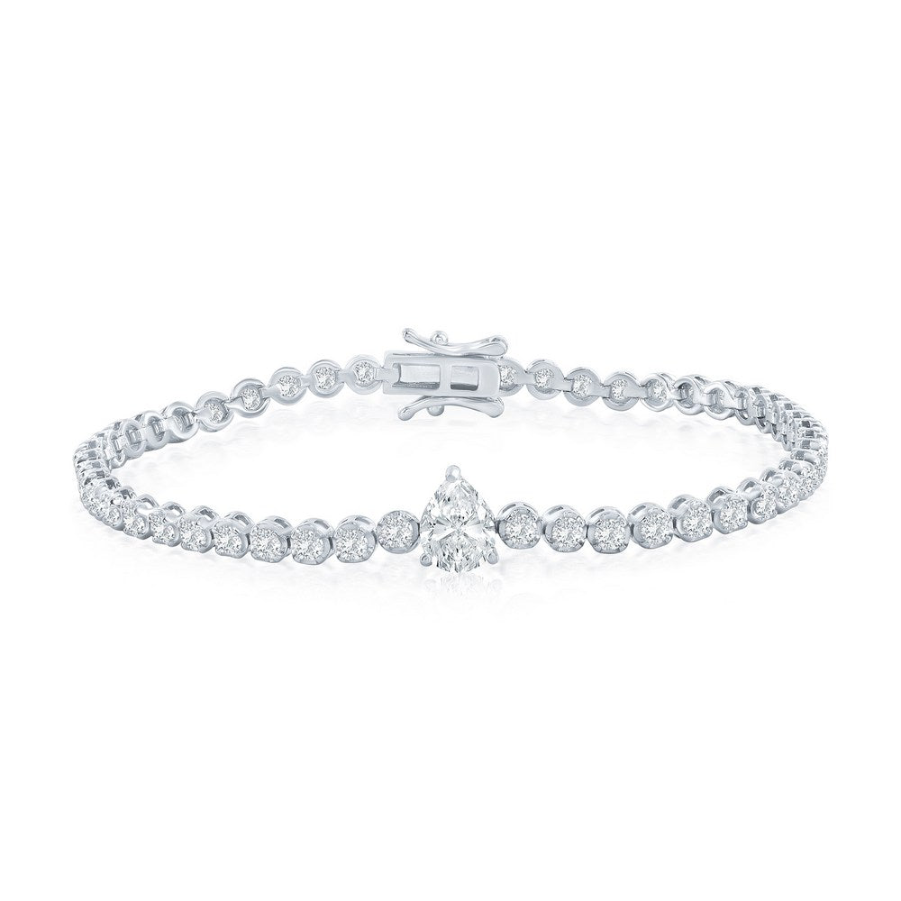 Sterling Silver, Pearshaped & Round CZ Tennis Bracelet