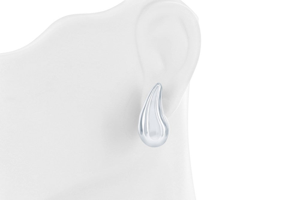 Sterling Silver, Polished Curved Puffed Teardrop Earrings