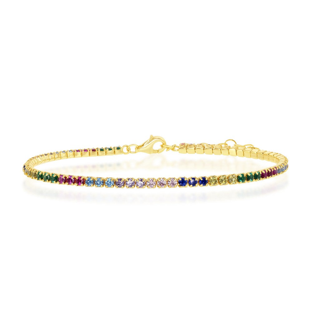 Sterling Silver Rainbow CZ Tennis Bracelet - Gold Plated