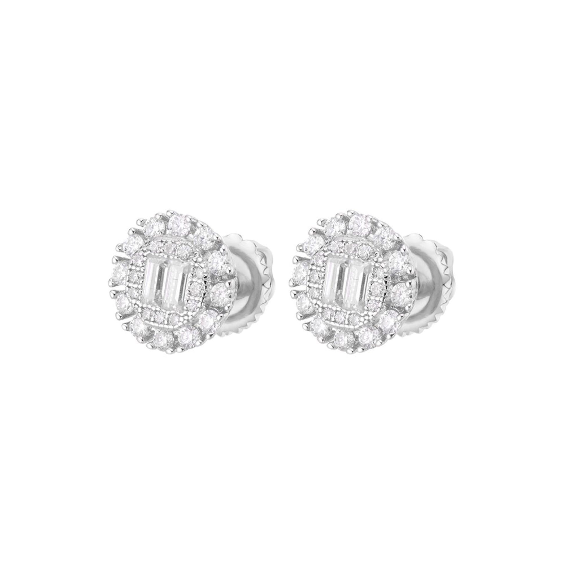 Sterling Silver Round Baguette Moissanite Designer Stud Earrings RP 5/8 Cttw