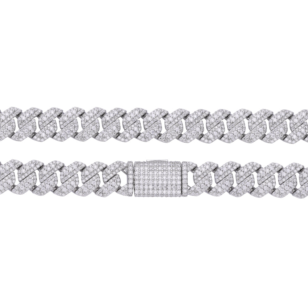 Sterling Silver Round Big Stone in Center Surrounded with Small Stones 10mm Moissanite Cuban Chain 22Inch Necklace RP 18-3/8 Cttw