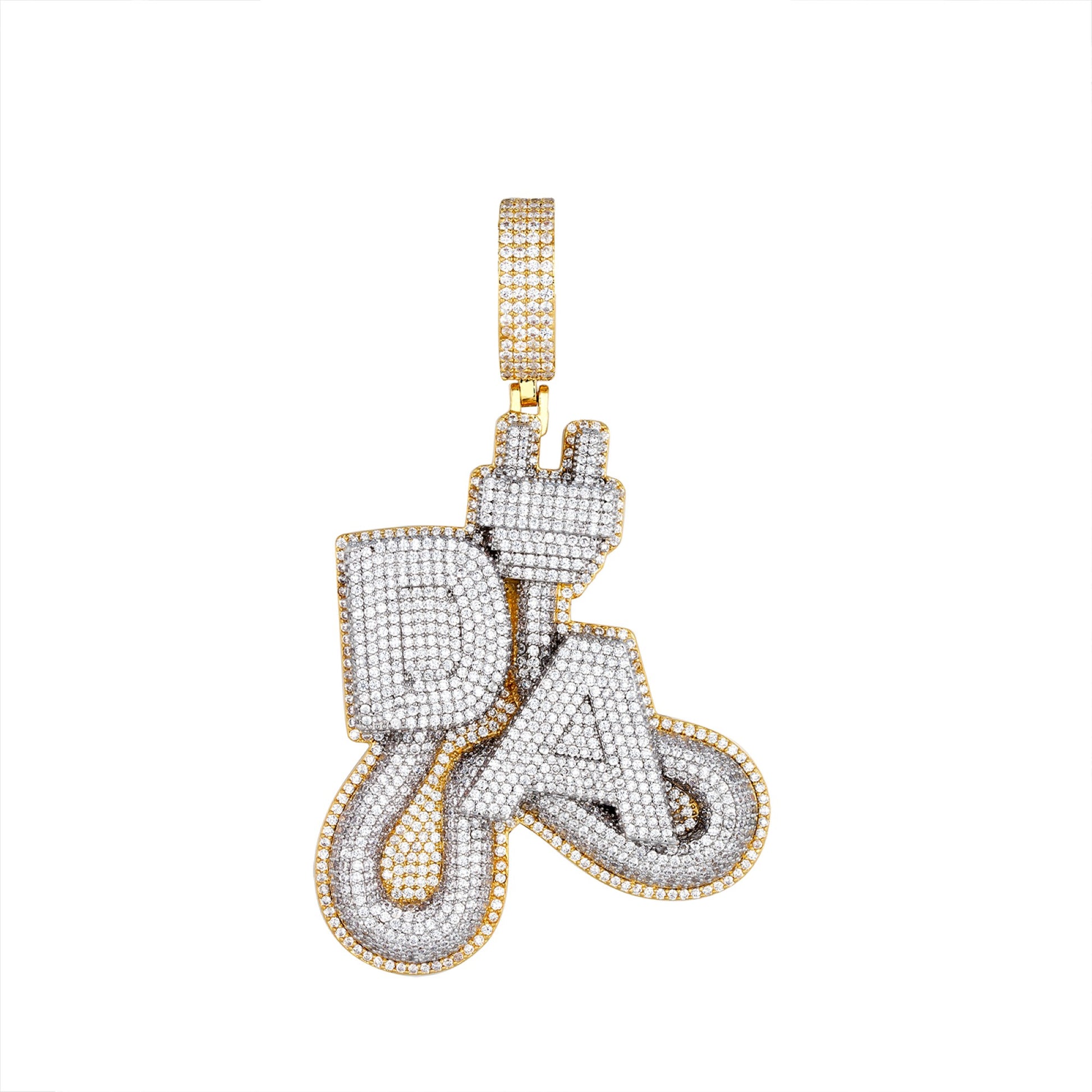 Sterling Silver Round Moissanite CZ Plug DA Word Pendant RP+GP 12-3/4 Cttw