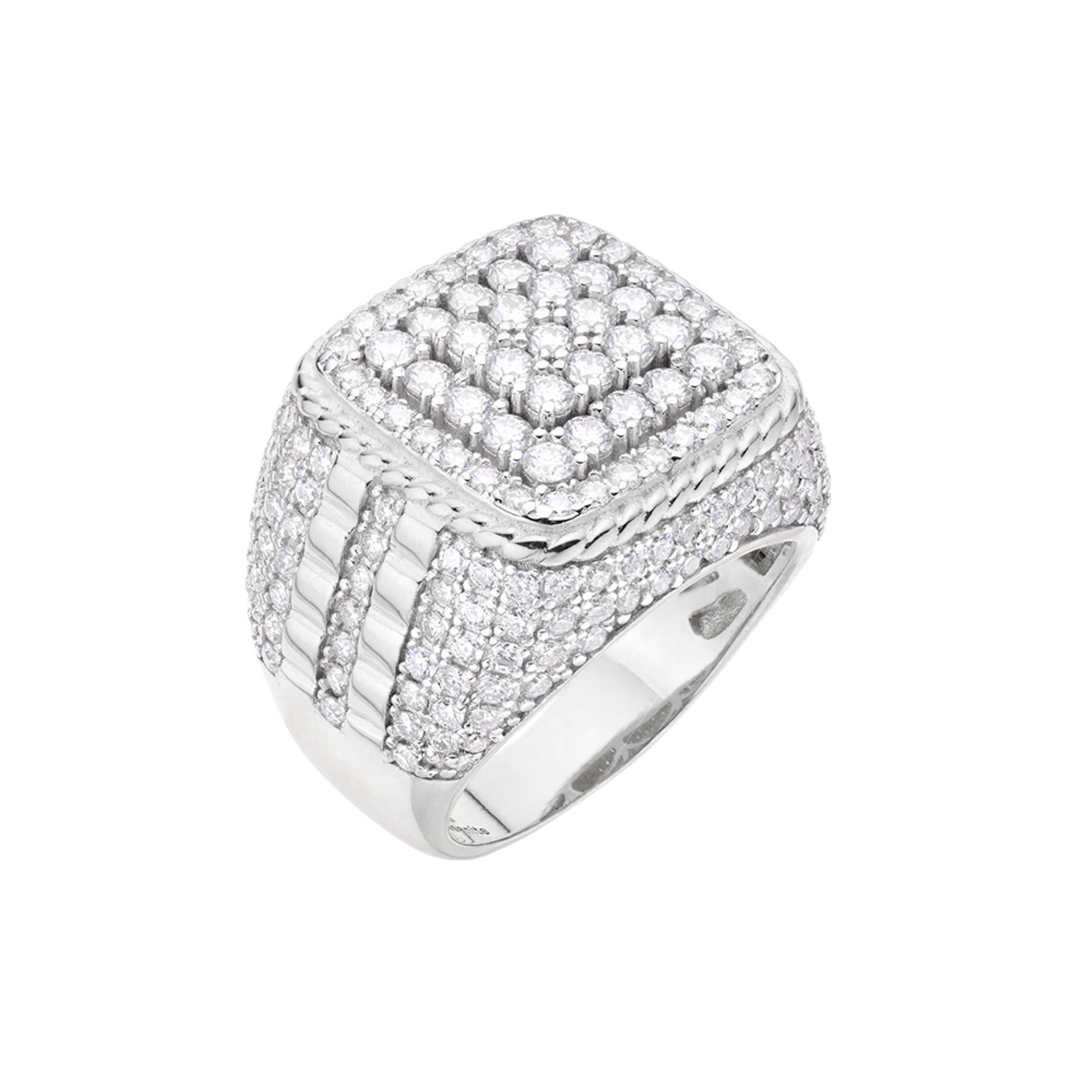 Sterling Silver Round Moissanite Designer Mens Ring RP 3-7/8 Cttw