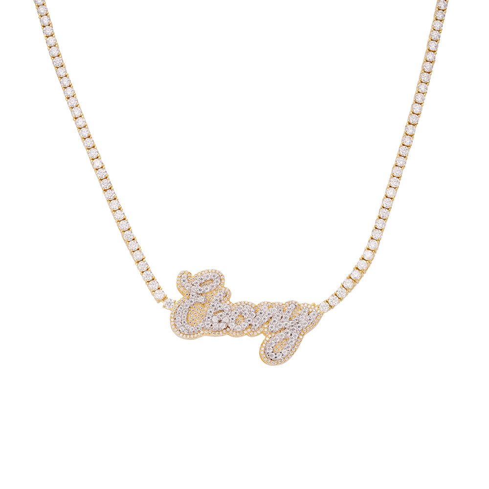 Sterling Silver Round Moissanite Ebony Word Designer 18 Inch Necklace RP+GP 16-1/8 Cttw