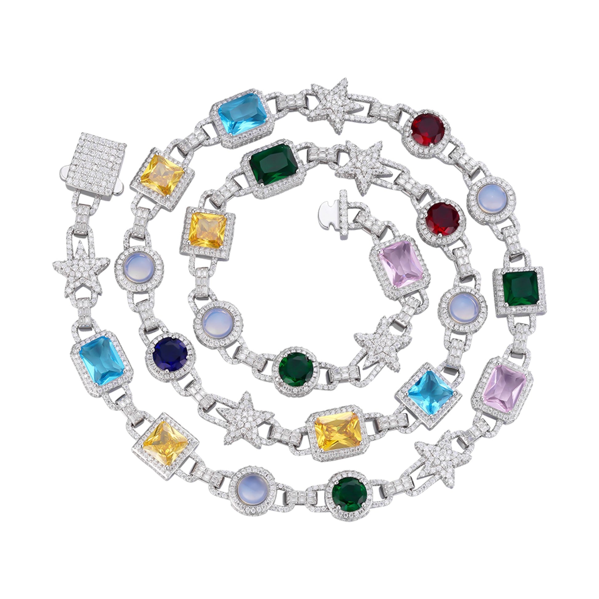 Sterling Silver Round Moissanite Star with Color Stone Designer 22 Inch Necklace RP 15-1/2 Cttw