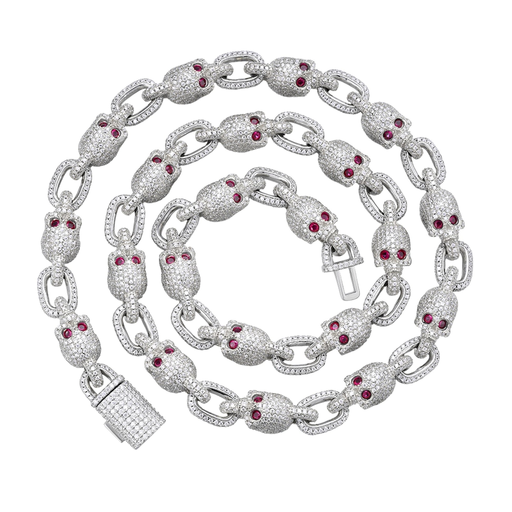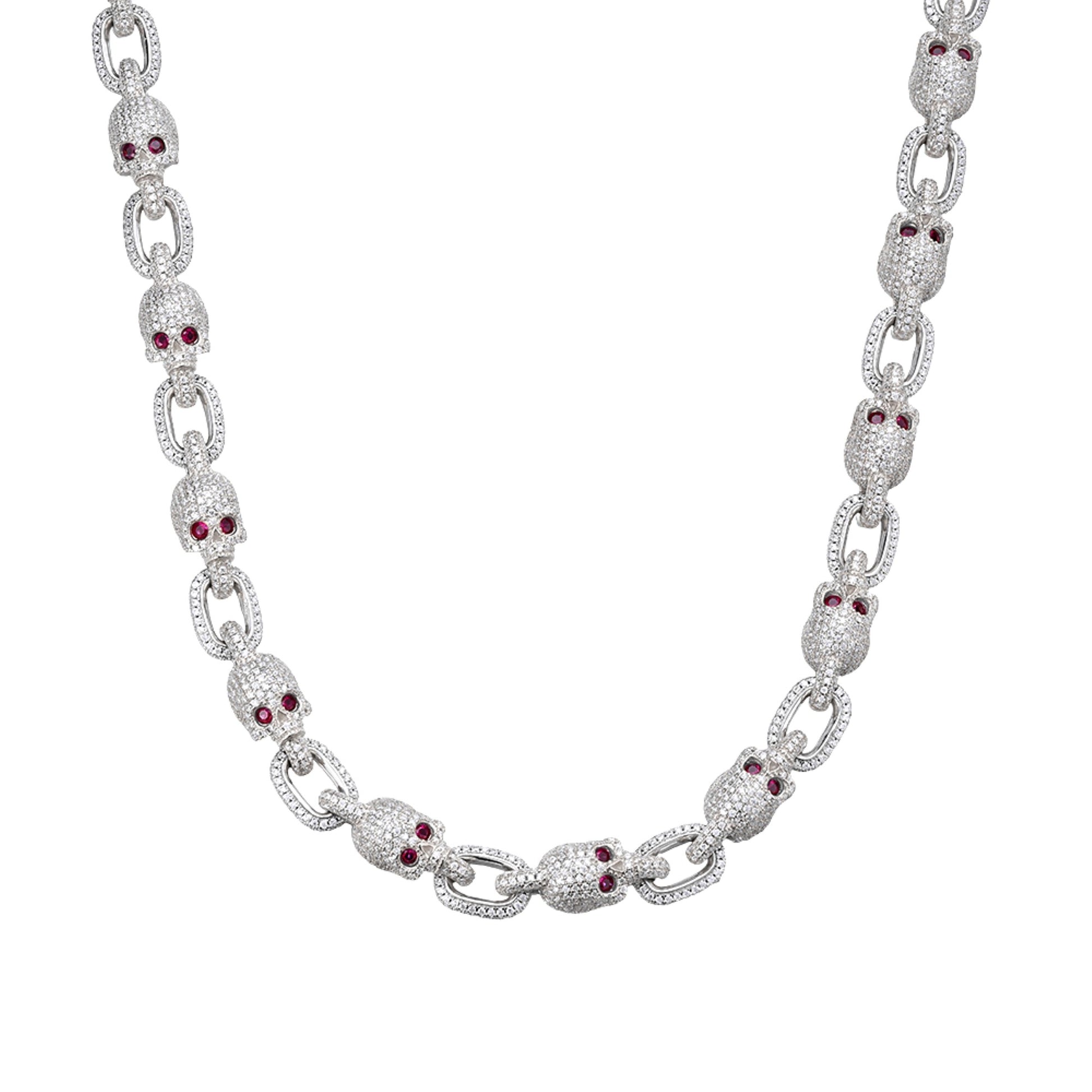 Sterling Silver Round Moissanite With Red Eyes Skull 22 Inch Necklace RP 30-3/4 Cttw