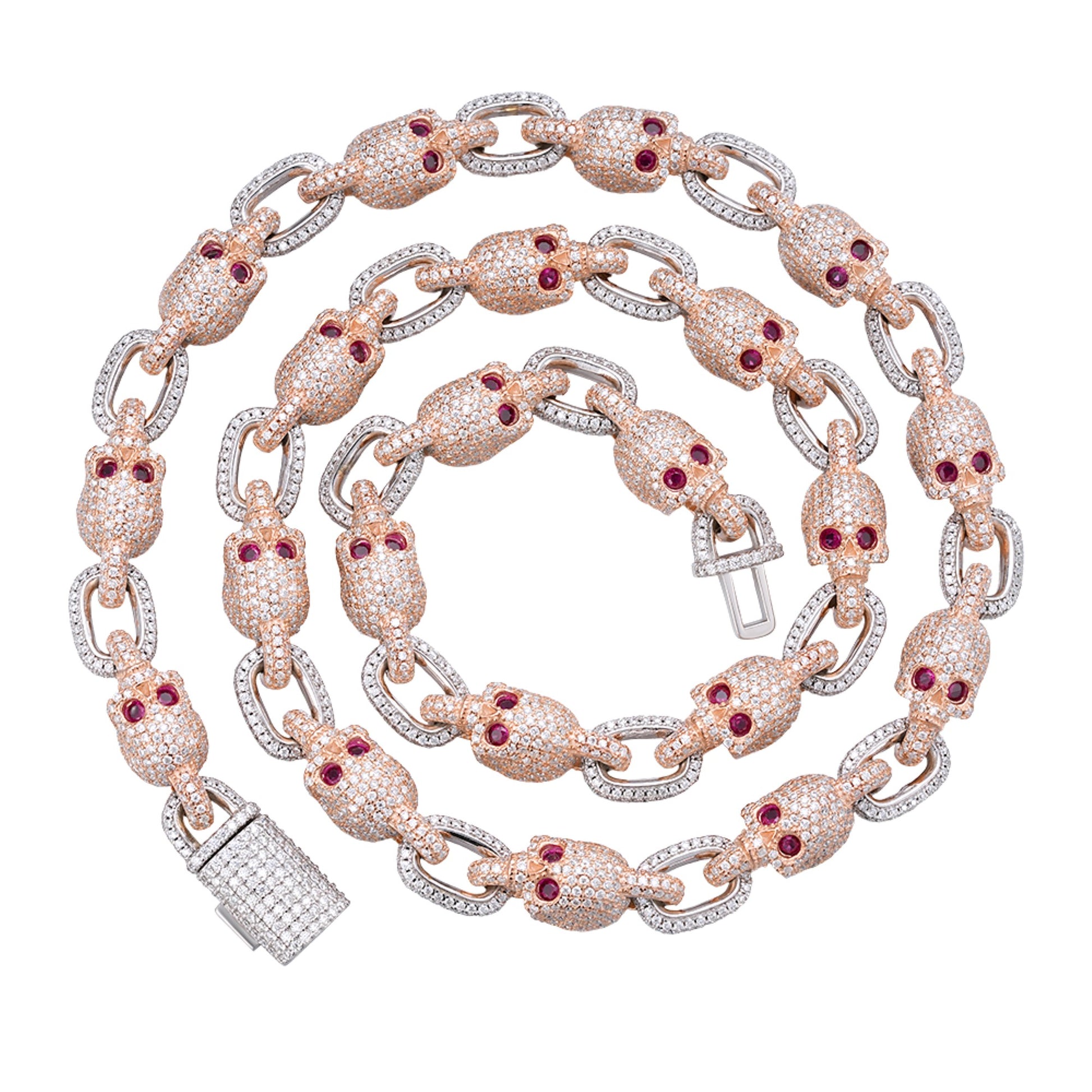 Sterling Silver Round Moissanite With Red Eyes Skull 22 Inch Necklace RP+PP 30-3/4 Cttw
