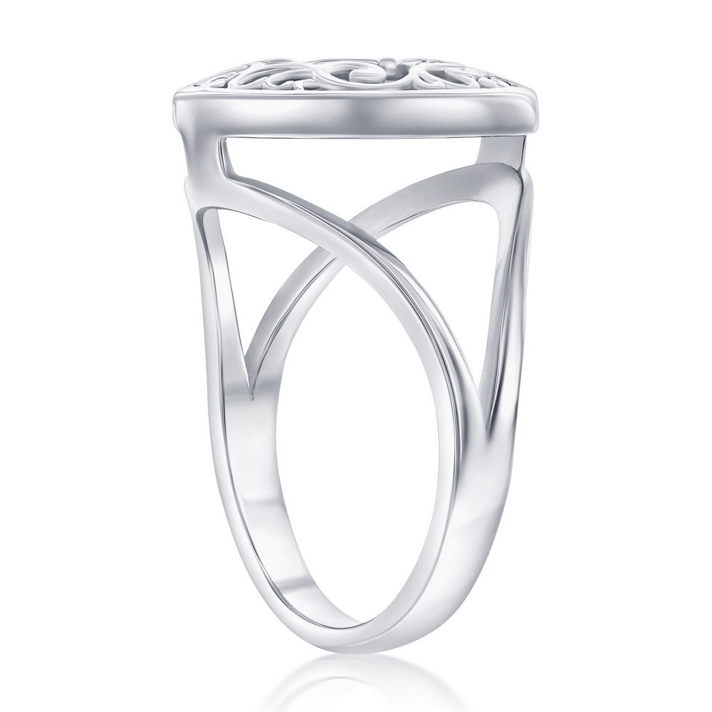 Sterling Silver, Round MOP Filigree Design Ring