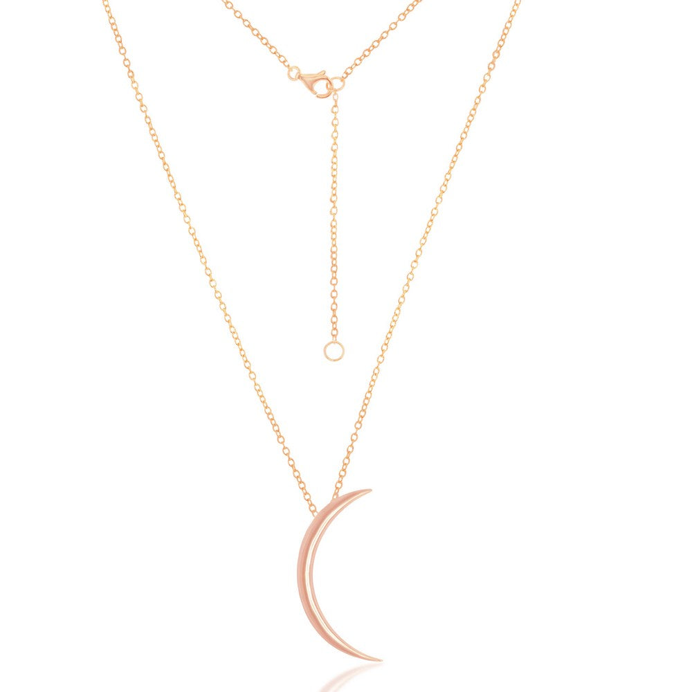 Sterling Silver Thin Crescent Moon Necklace - Rose Gold Plated