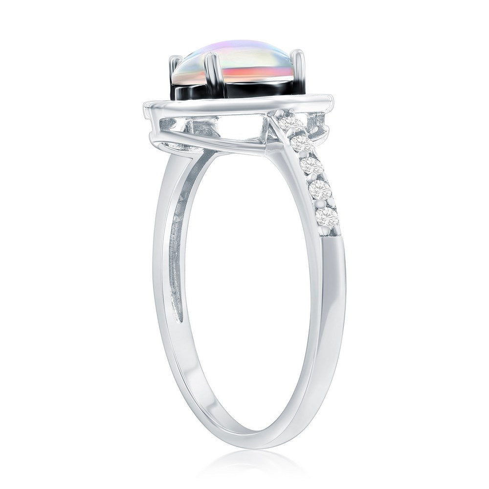 Sterling Silver, White Opal & Black Enamel Oval CZ Ring