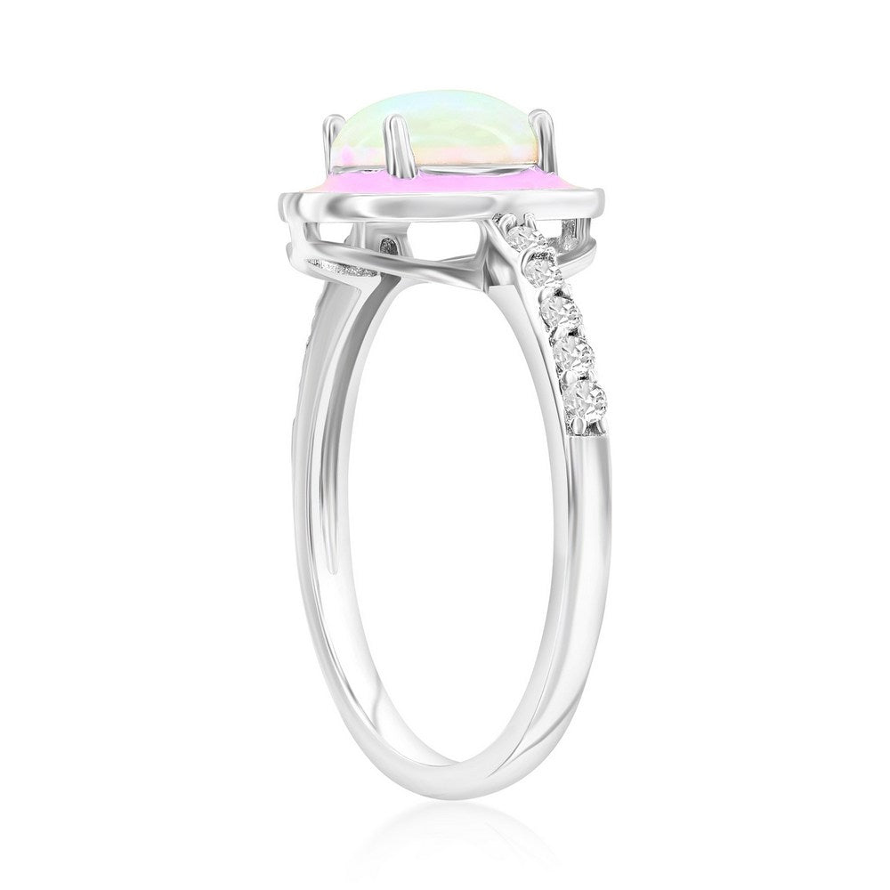 Sterling Silver White Opal & Pink Enamel Oval CZ Ring