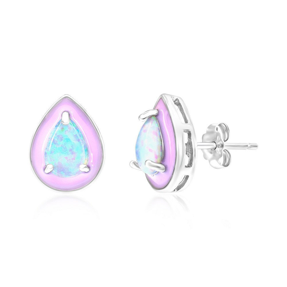 Sterling Silver White Opal & Pink Enamel Pearshaped Studs